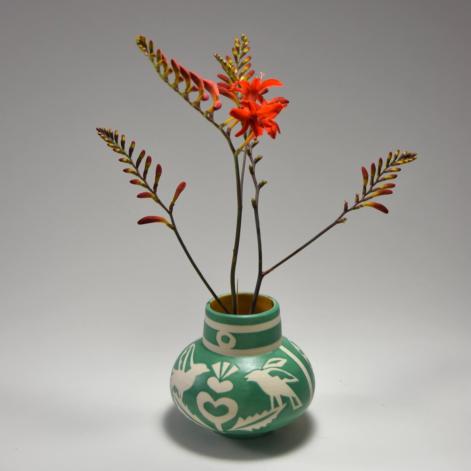 Spring Summer Vase.  4 x 8 x 6 inches. Porcelain, Underglaze, Glaze