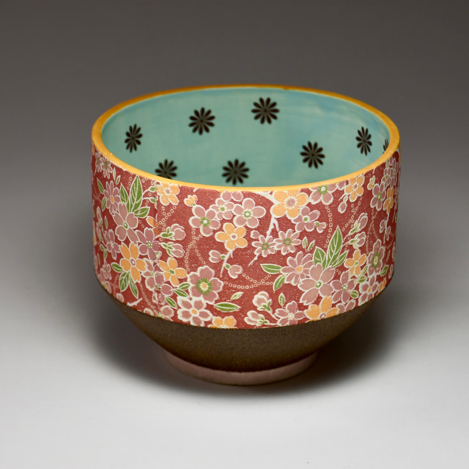 Small Flowered Bowl.  Porcelain, tissue transfer, decals, enamel, glaze.