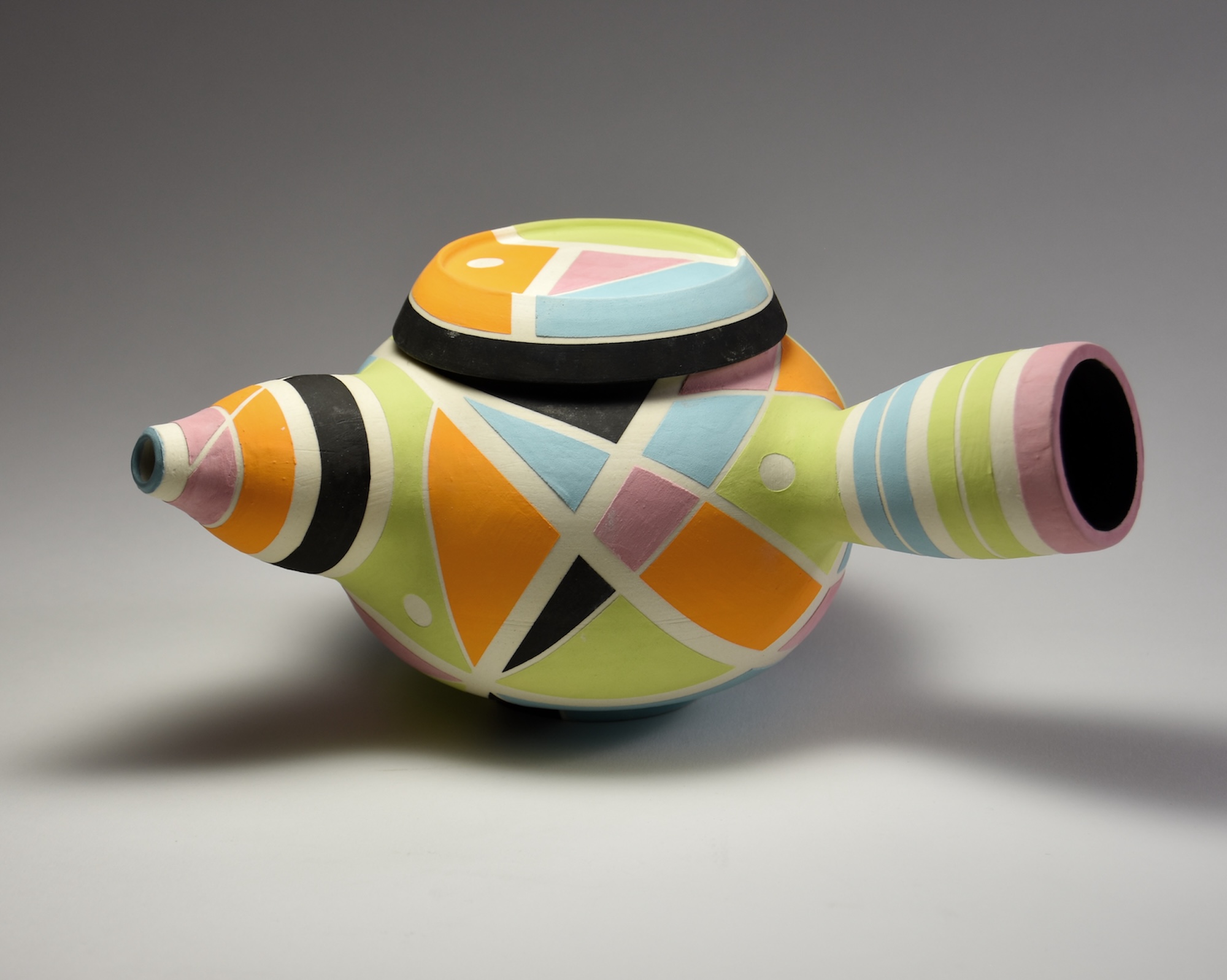 Geo Teapot. 9 x 6 x 6 inches.  Porcelain, Glaze, Underglaze.