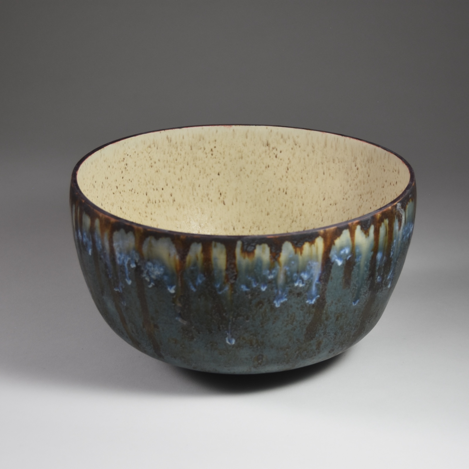 Medium Size Blue and Brown Bowl. Porcelain, Glaze.