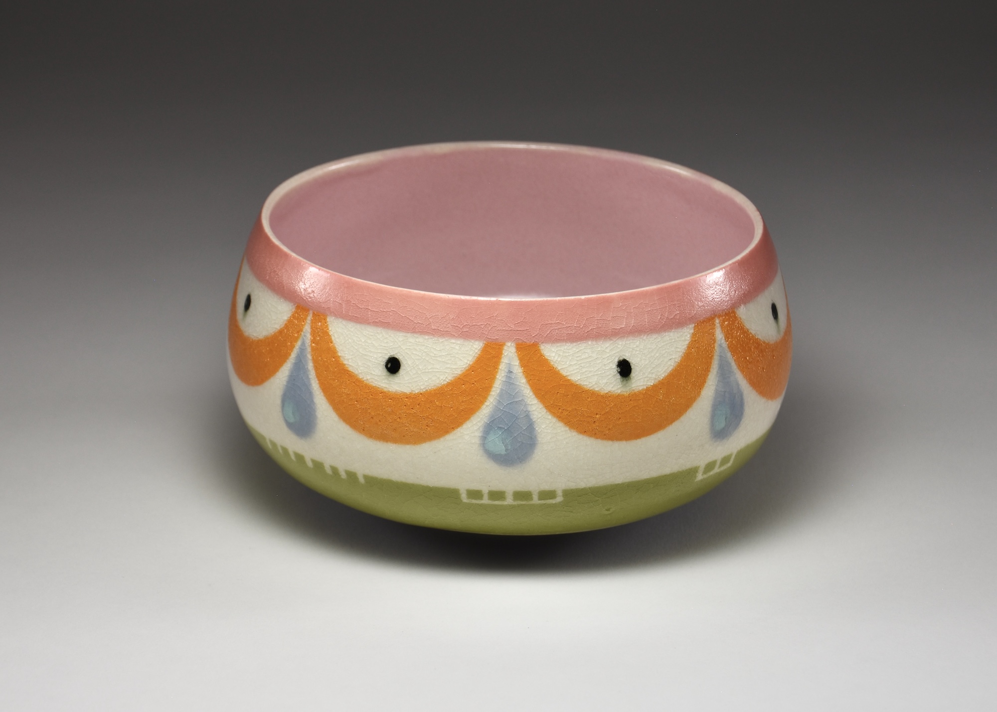 Trio Bowl, Porcelain, glaze, enamel. Wheel thrown and altered. 7.5 x 7.5 x 5 inches